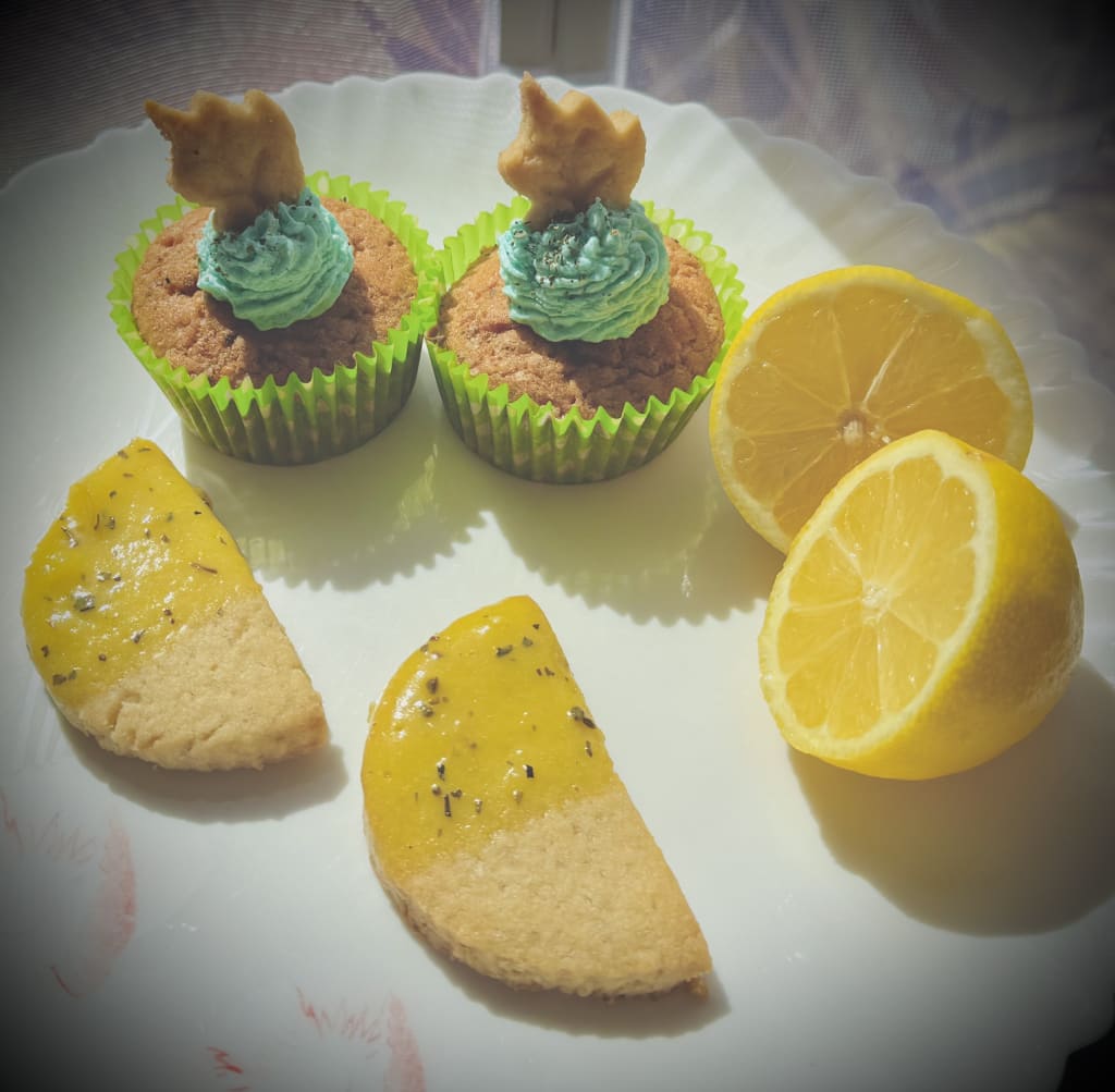 As you can see in the picture, I did add a coconut shortbread to my cakes and that was because I had extra biscuit dough - so I cut some leaf shapes and pushed them a little into the buttercream