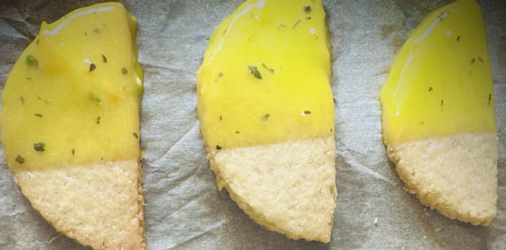 1. Dip half the cookie in the curd and place on greaseproof paper upon a tray