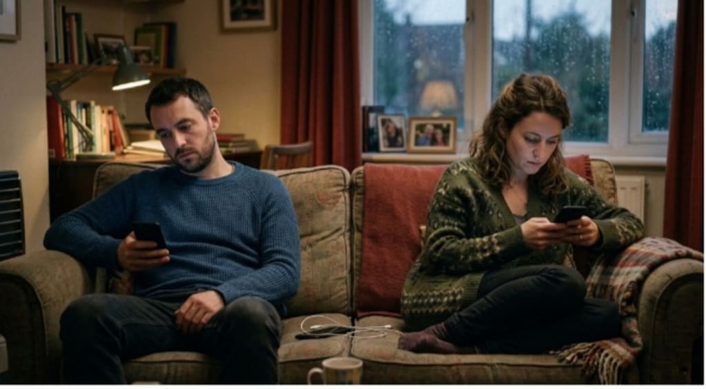 Across the café, couples sat together—some talking, some just scrolling silently side by side. It was strange how connected everyone looked… and how distant they actually were.
