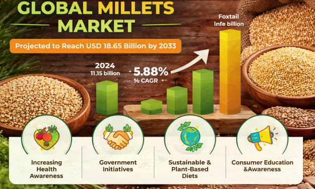 The global food industry is undergoing a significant transformation as consumers increasingly prioritize health, sustainability, and nutritional value. Among the many grains gaining renewed attention, millets—once considered traditional or even underutilized crops—are now emerging as a powerful force in modern diets. According to recent insights, the Global Millets Market was valued at USD 11.15 billion in 2024 and is projected to reach USD 18.65 billion by 2033, growing at a CAGR of 5.88% from 2025 to 2033 .
